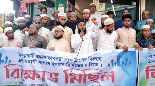 হবিগঞ্জ প্রতিনিধি: হবিগঞ্জের নবীগঞ্জে হিন্দুত্ববাদী চক্রান্ত ও সন্ত্রাসী সংগঠন ইসকন নিষিদ্ধের দাবিতে বিক্ষোভ মিছিল অনুষ্ঠিত হয়েছে।বিক্ষোভ ও মানববন্ধন আঞ্জুমানে আল ইসলাহ নবীগঞ্জ উপজেলা শাখার সভাপতি হাফেজ ইব্রাহিমের সভাপতিত্বে এবং বাংলাদেশ…