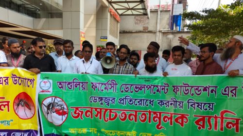 আশুলিয়া প্রতিনিধি: আতঙ্ক নয়,"সচেতনতাই ডেঙ্গু প্রতিরোধের প্রধান উপায়" এই স্লোগানে সাভারে আশুলিয়া ফার্মেসী ডেভেলপমেন্ট ফাউন্ডেশন এর উদ্যোগে ডেঙ্গুজ্বর প্রতিরোধে জনসচেতনতা মূলক র্যালিতে ঔষধের ২৫% কমিশন বৃদ্ধির দাবি জানানো হয়।সোমবার (২০…