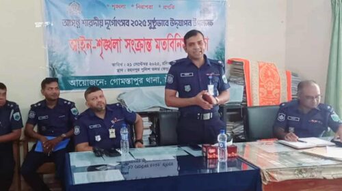 গোমস্তাপুরে দূর্গােৎসব উপলক্ষে আইন-শৃঙ্খলা মতবিনিময় সভা