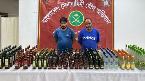 মাধবপুরে সেনাবাহিনীর অভিযানে ২১৩ বোতল বিদেশি মদসহ দুই মাদক ব্যবসায়ী আটক