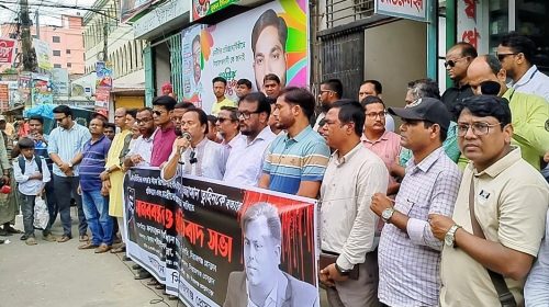 সাংবাদিক তুহিন হত্যার প্রতিবাদে কিশোরগঞ্জ প্রেসক্লাবের উদ্যোগে মানববন্ধন