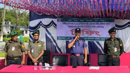 শারদীয় দুর্গোৎসব উপলক্ষে নিরাপত্তা ব্যবস্থা জোরদার বোদায় আনসার ও ভিডিপি সদস্যদের ব্রিফিং