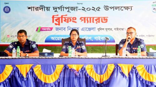 গাইবান্ধায় শারদীয় দূর্গাপূজা-উপলক্ষে পুলিশ সদস্যদের উদ্দেশ্যে ব্রিফিং প্যারেড অনুষ্ঠিত